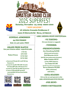 November 2025 Superfest Flyer Tonto Amateur Radio Association - N7TAR Posted on November 6, 2025 by N7TARAdminNovember 6, 2025 Here is the link to the November 15, 2025 Superfest Flyer. Enjoy! 2025-SUPERFEST-full-flyer-1 Click Image For PDF